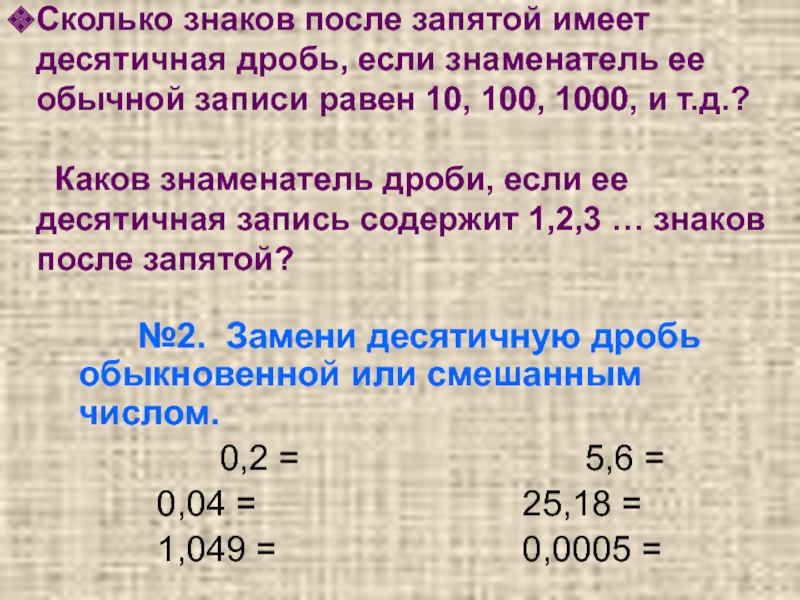 №2. Замени десятичную дробь обыкновенной или смешанным числом.