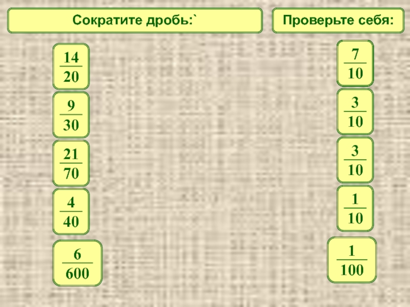 Выйдя к публике, он вдруг забыл, какие из этих дробей равны. Перерисуйте эти карточки в тетрадь, соединив знаком = дроби , обозначающие одно и то же число.