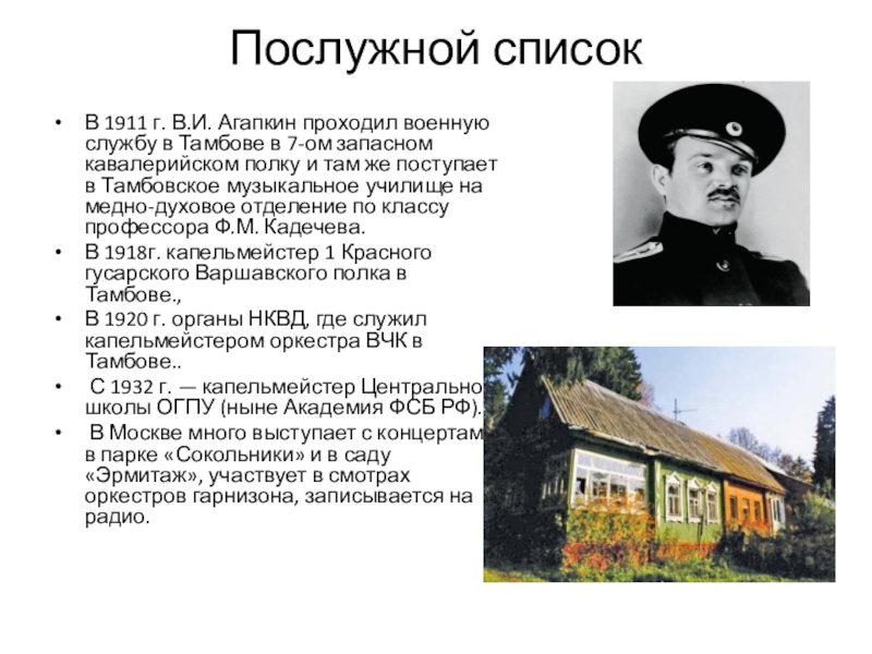 В 1911 г. В.И. Агапкин проходил военную службу в Тамбове