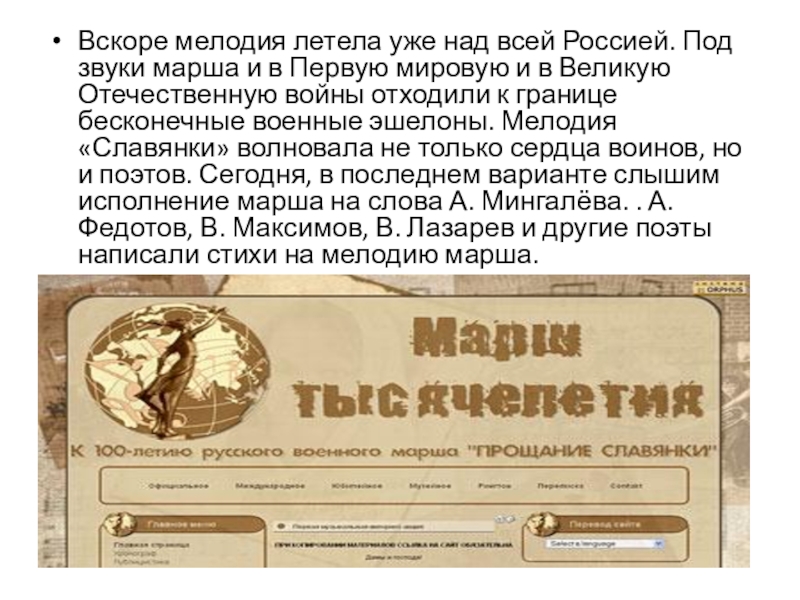 Слайд 6МАРШ. Создание марша «Прощание славянки»
