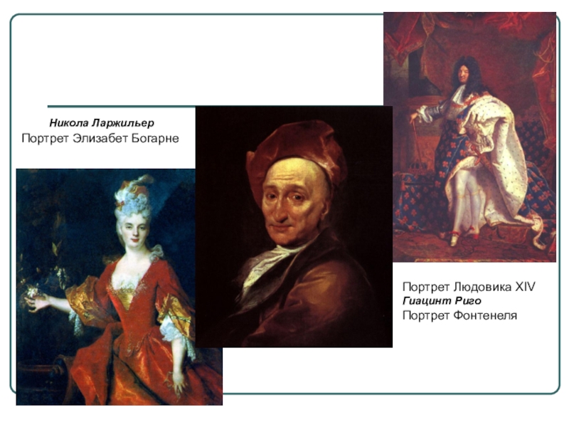 Никола ЛаржильерПортрет Элизабет БогарнеПортрет Людовика XIVГиацинт РигоПортрет Фонтенеля