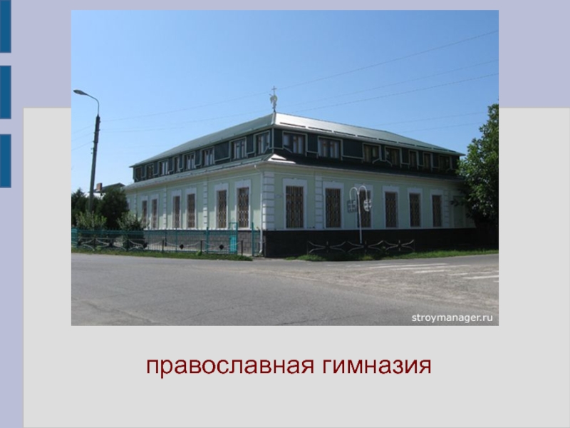 Напротив находится православная гимназия. Раньше в этом здании находилась начальная (1-3 класс) школа №20, здание было одноэтажным с печным отоплением