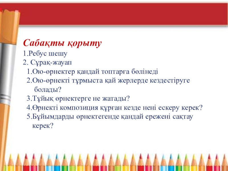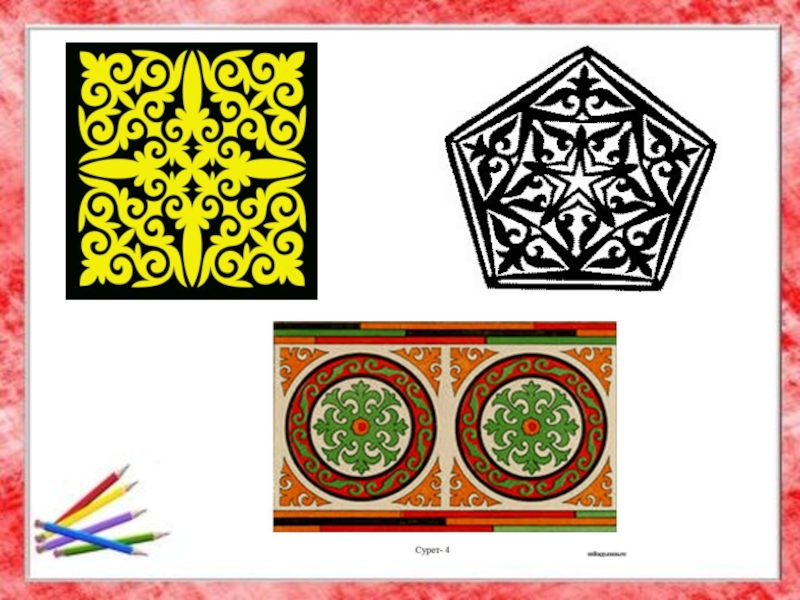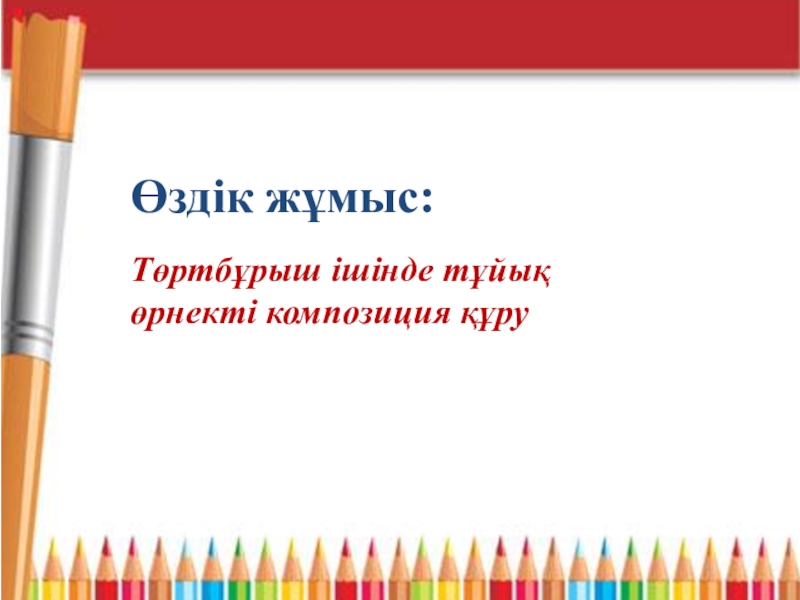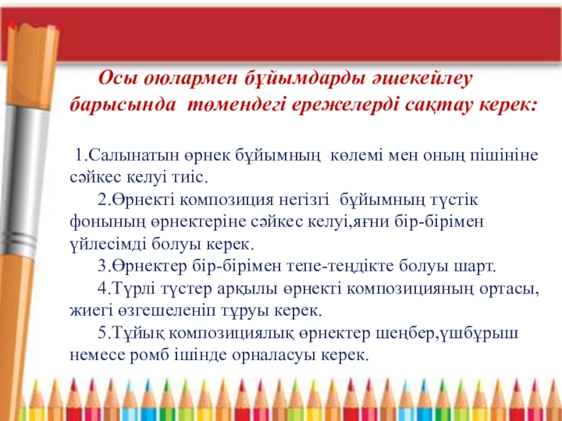 4.Түрлі түстер арқылы өрнекті композицияның ортасы,жиегі өзгешеленіп тұруы керек.