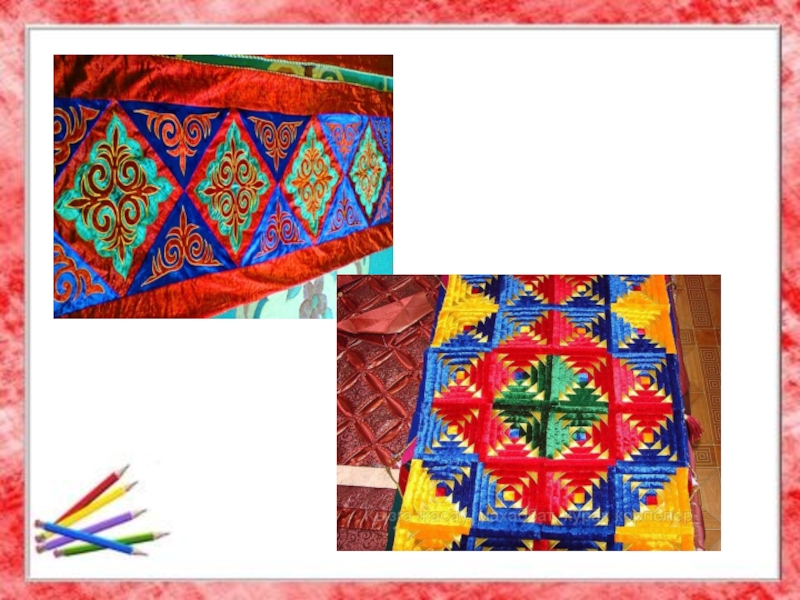 2.Өрнекті композиция негізгі бұйымның түстік фонының өрнектеріне сәйкес келуі,яғни бір-бірімен үйлесімді болуы керек.