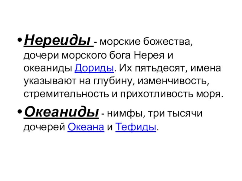Слайд 10Нереиды - морские божества, дочери морского бога Нерея и океаниды Дориды. Их пятьдесят,