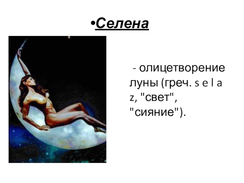 Селена 	- олицетворение луны (греч. s e l a z,
