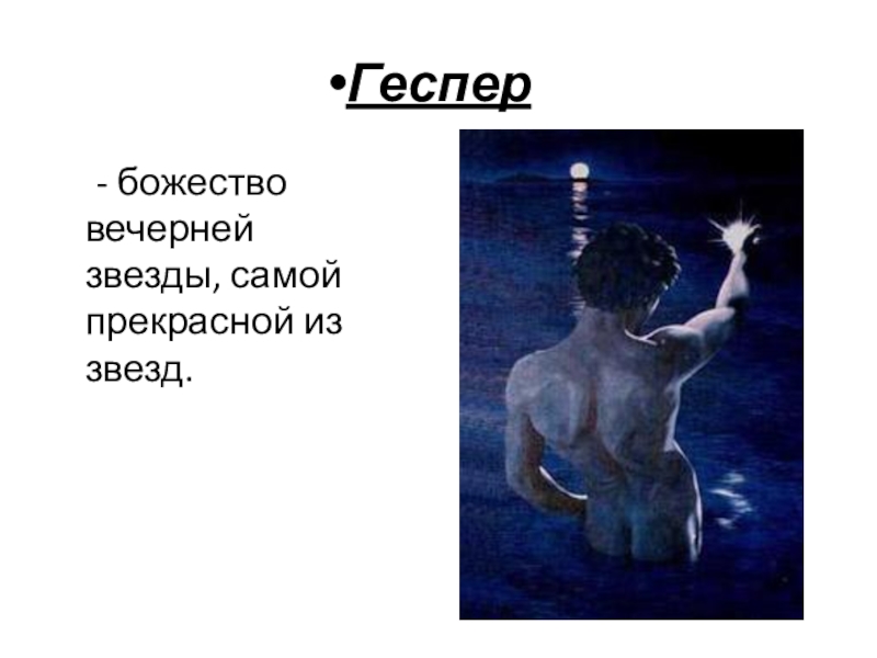 Геспер	- божество вечерней звезды, самой прекрасной из звезд.