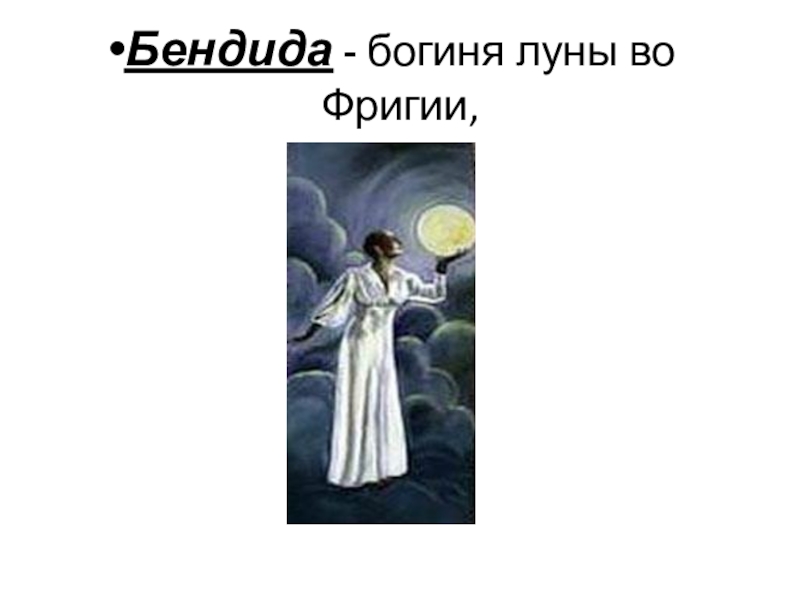 Слайд 12Бендида - богиня луны во Фригии,
