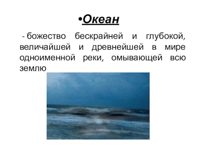 Океан	- божество бескрайней и глубокой, величайшей и древнейшей в мире одноименной реки, омывающей всю землю