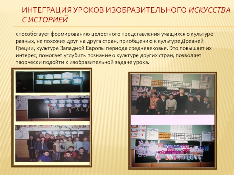 Слайд 15ИНТЕГРАЦИЯ УРОКОВ ИЗОБРАЗИТЕЛЬНОГО ИСКУССТВА С ИСТОРИЕЙ