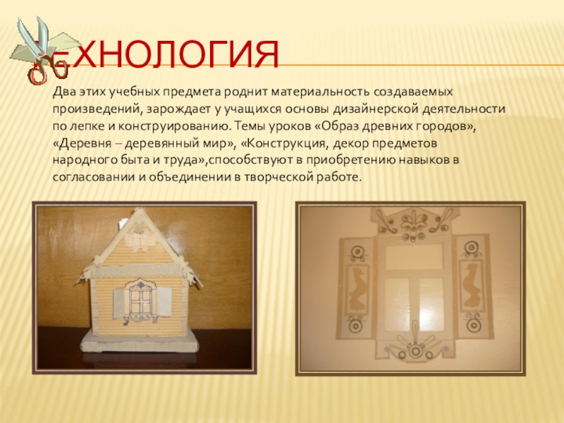Два этих учебных предмета роднит материальность создаваемых произведений, зарождает у учащихся