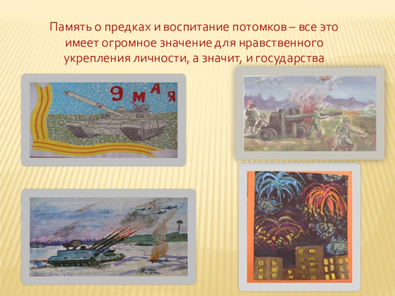 Слайд 18Память о предках и воспитание потомков – все это имеет огромное