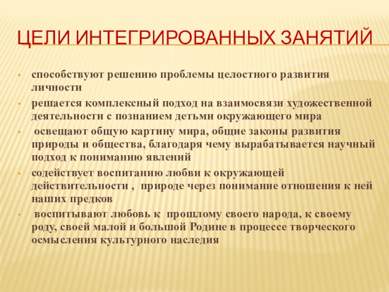 Слайд 3ЦЕЛИ ИНТЕГРИРОВАННЫХ ЗАНЯТИЙ