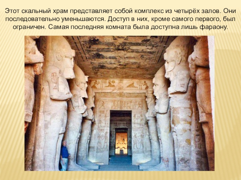 Слайд 12Этот скальный храм представляет собой комплекс из четырёх залов. Они последовательно
