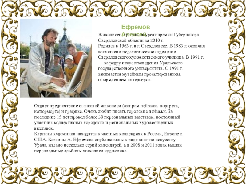 Картины художника находятся в частных коллекциях в России, Европе и США. Картины А. Ефремова опубликованы в ряде книг по искусству Урала, издано несколько серий календарей, а в 2008 и 2011 годах вышли персональные альбомы живописи художника.