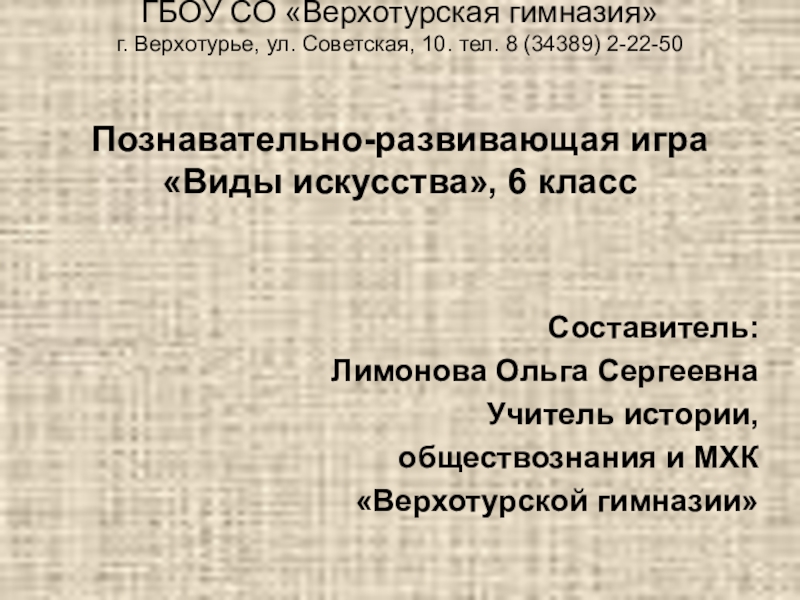 Познавательно-развивающая игра «Виды искусства», 6 класс