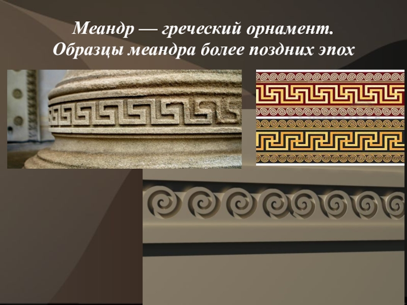 Слайд 3Меандр — греческий орнамент. Образцы меандра более поздних эпох