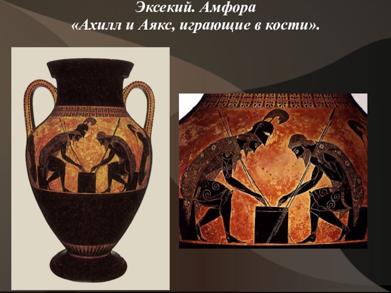 Слайд 24Эксекий. Амфора «Ахилл и Аякс, играющие в кости».