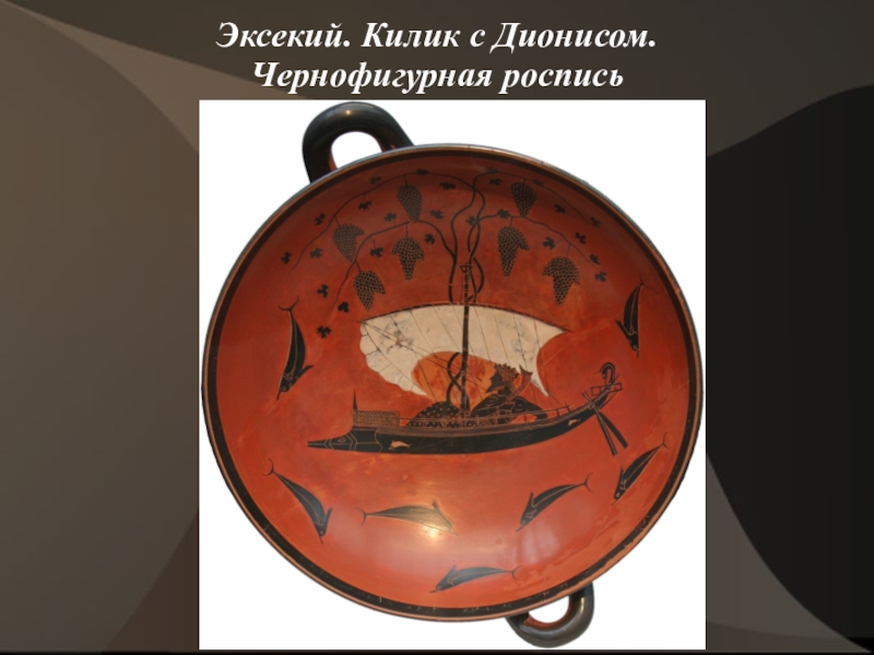 Слайд 23Эксекий. Килик с Дионисом. Чернофигурная роспись