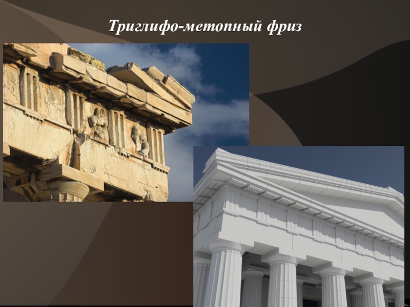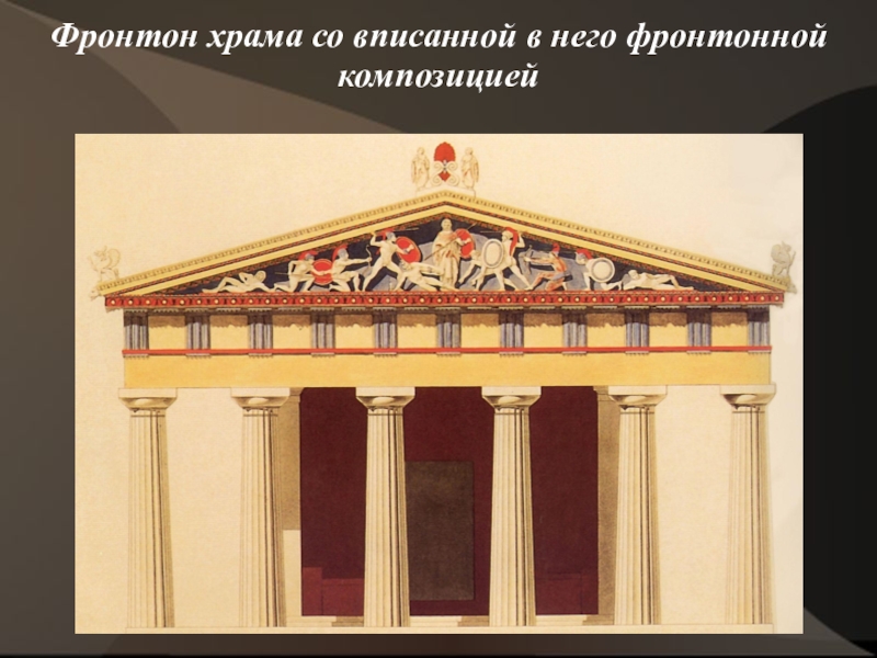 Слайд 15Фронтон храма со вписанной в него фронтонной композицией