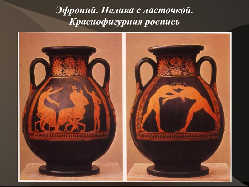 Слайд 25Эфроний. Пелика с ласточкой. Краснофигурная роспись