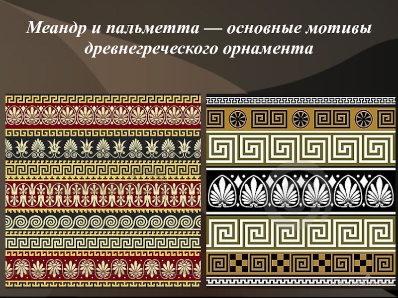 Слайд 4Меандр и пальметта — основные мотивы древнегреческого орнамента
