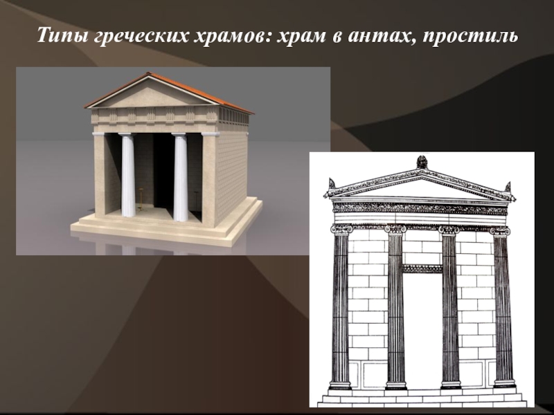 Слайд 8Типы греческих храмов: храм в антах, простиль