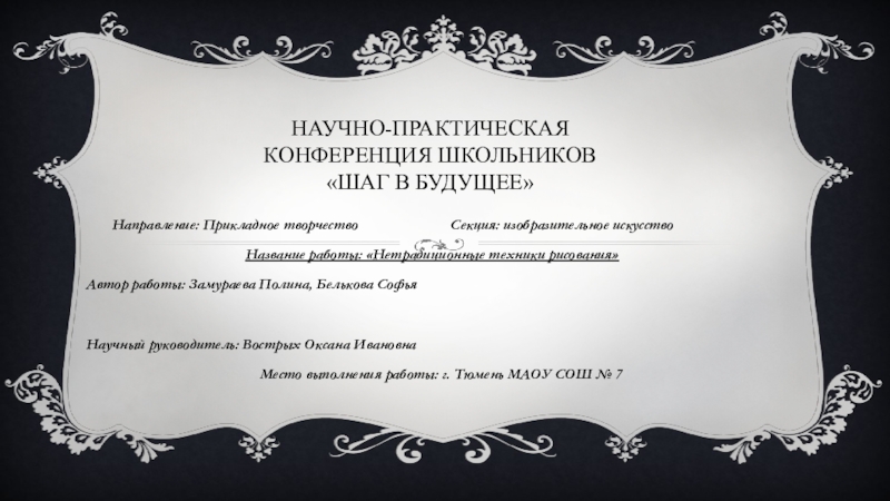 Место выполнения работы: г. Тюмень МАОУ СОШ № 7