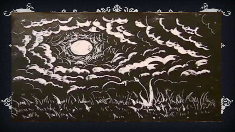 На черном фоне появляется рисунок из тоненьких цветных или белых штрихов.