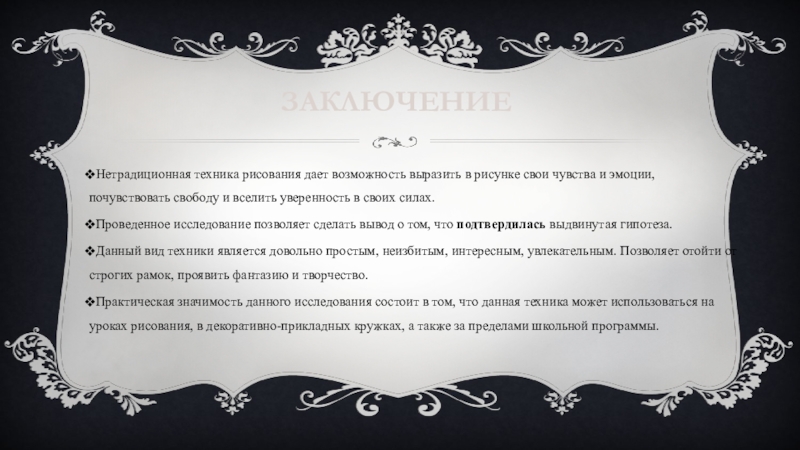 Практическая значимость данного исследования состоит в том, что данная техника может использоваться на уроках рисования, в декоративно-прикладных кружках, а также за пределами школьной программы.