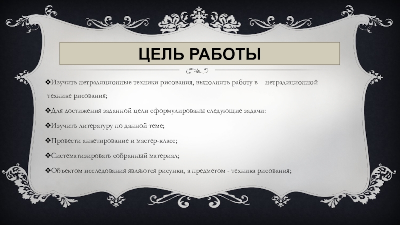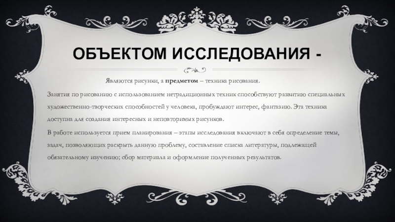 Объектом исследования являются рисунки, а предметом - техника рисования;