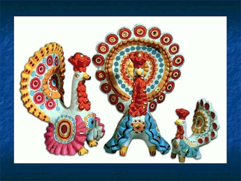 Предельная обобщенность силуэта, острая подчеркнутость деталей, яркая орнаментальная роспись обусловили непреходящее художественное значение глиняных фигурок, уже переставших выполнять роль игрушек и прочно вошедших в современный быт в качестве украшения жилого интерьера.