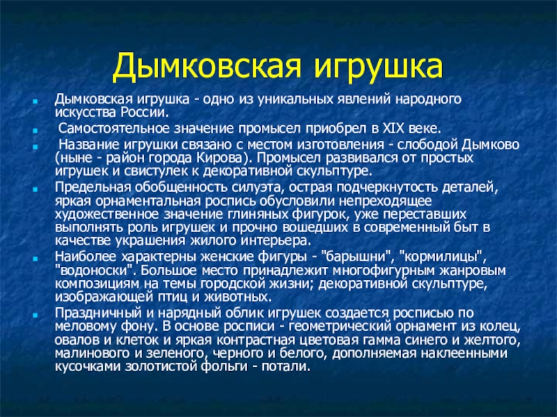 Дымковская игрушка - одно из уникальных явлений народного искусства России.
