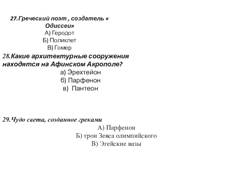 27.Греческий поэт , создатель « Одиссеи»