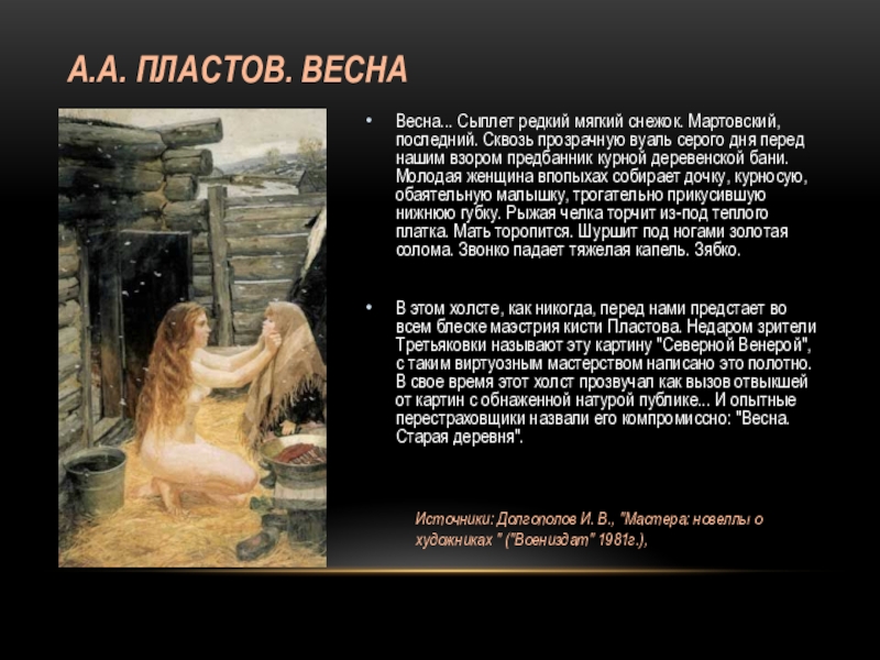Источники: Долгополов И. В., "Мастера: новеллы о художниках " ("Воениздат" 1981г.),