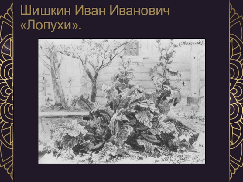 Слайд 14Шишкин Иван Иванович «Лопухи».