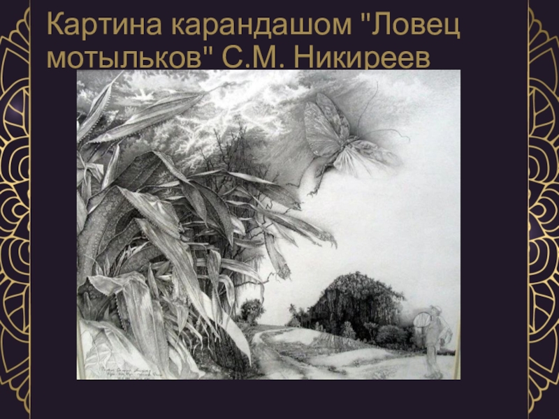 Слайд 12Картина карандашом "Ловец мотыльков" С.М. Никиреев