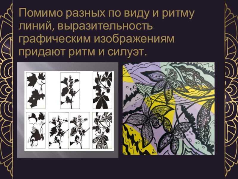 Помимо разных по виду и ритму линий, выразительность графическим изображениям придают ритм и силуэт.
