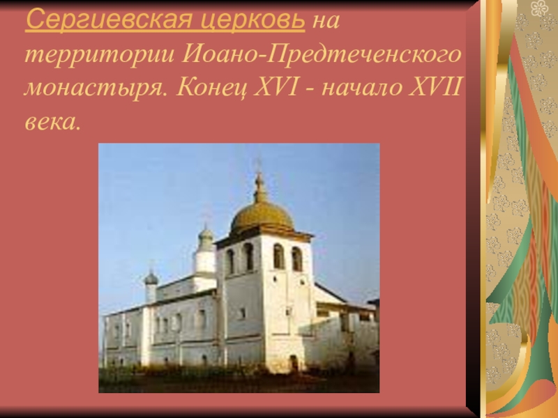 Сергиевская церковь на территории Иоано-Предтеченского монастыря. Конец XVI - начало XVII