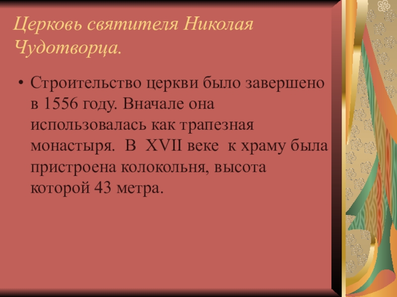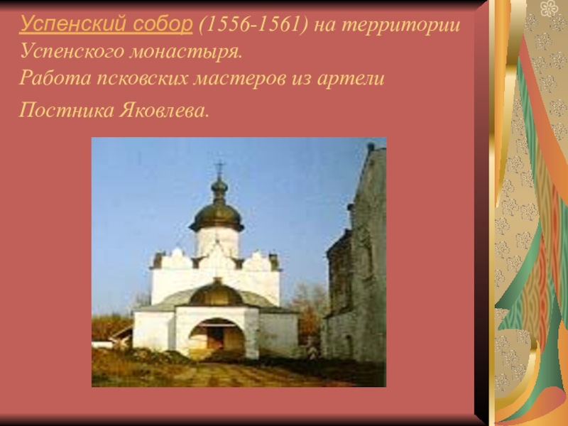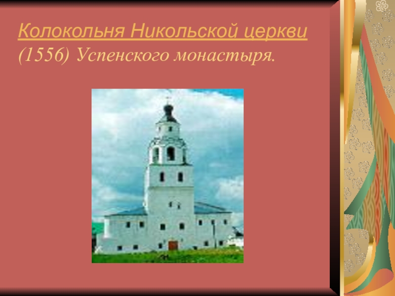 Слайд 34Колокольня Никольской церкви (1556) Успенского монастыря.