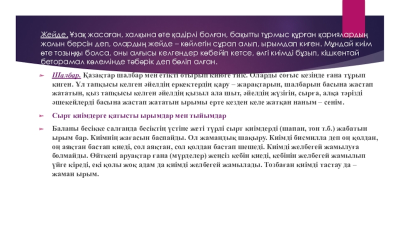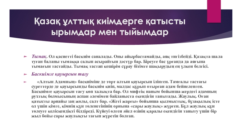 Слайд 6Қазақ ұлттық киімдерге қатысты ырымдар мен тыйымдар