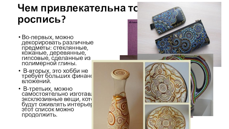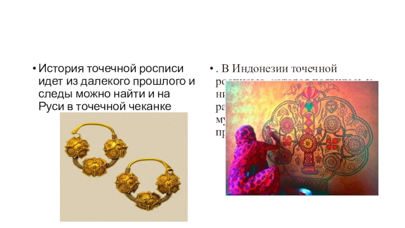 . В Индонезии точечной росписью, которая появилась у них еще древних веках, расписывали посуду, музыкальные инструменты, предметы интерьера.