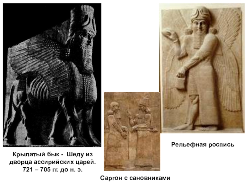 Слайд 17Крылатый бык - Шеду из дворца ассирийских царей.