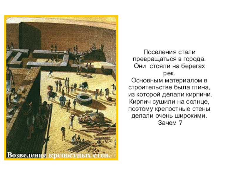 Кирпич сушили на солнце, поэтому крепостные стены делали очень широкими.