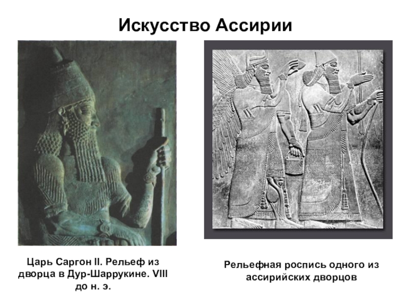 несколькими столицами: Ашшур, Хор-сабад или Ниневия. В них возводились дворцы с выгравированными на каменных плитах рельефами, ортостатами, которые заполняют нижнюю часть церемониальных помещений. Их истоки восходят к III тысячелетию до н.э.