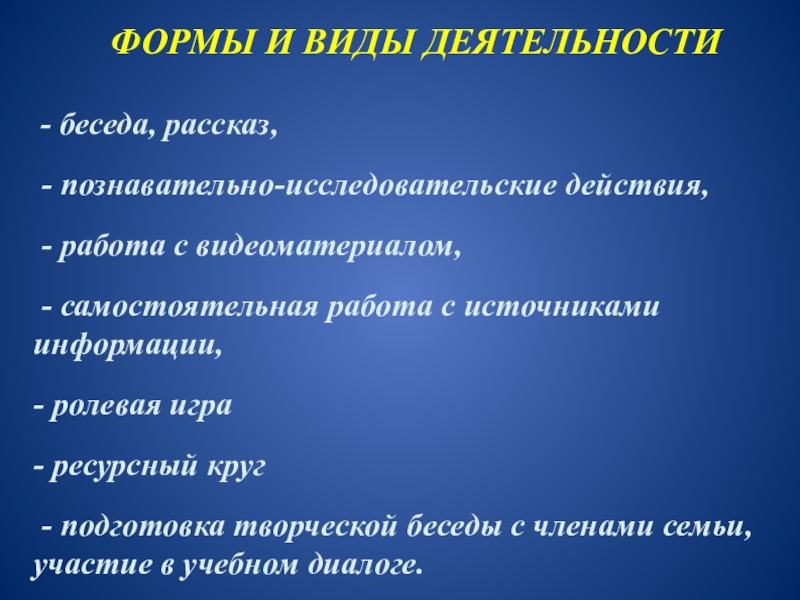 ФОРМЫ И ВИДЫ ДЕЯТЕЛЬНОСТИ