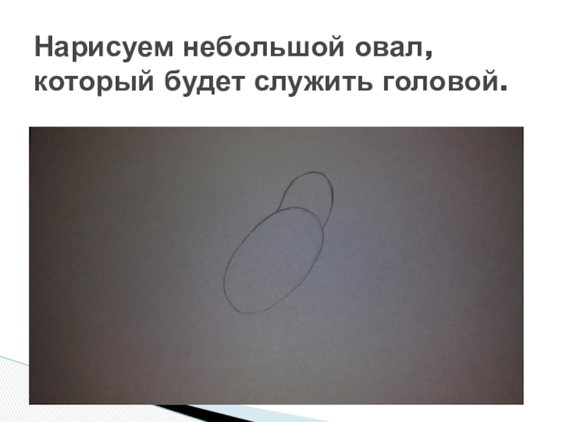 Слайд 3Нарисуем небольшой овал, который будет служить головой.