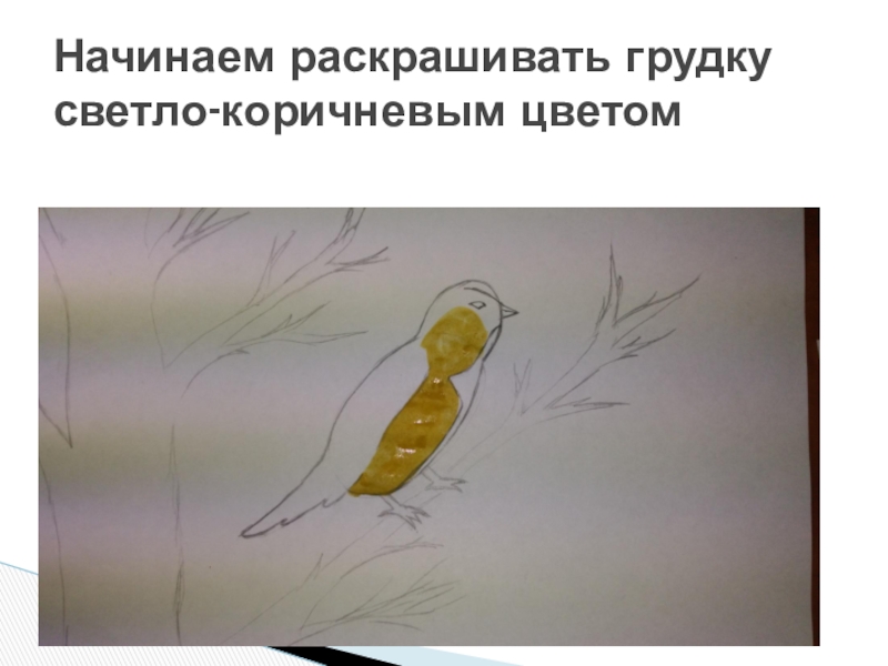 Слайд 8Начинаем раскрашивать грудку светло-коричневым цветом