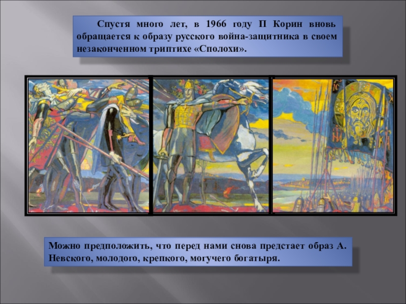 Можно предположить, что перед нами снова предстает образ А. Невского, молодого, крепкого, могучего богатыря.