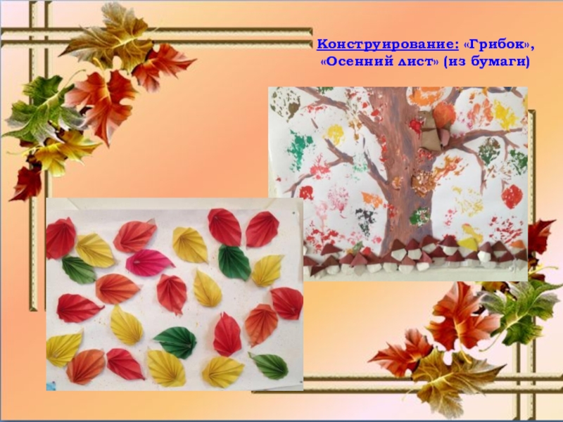 Слайд 32Конструирование: «Грибок», «Осенний лист» (из бумаги)
